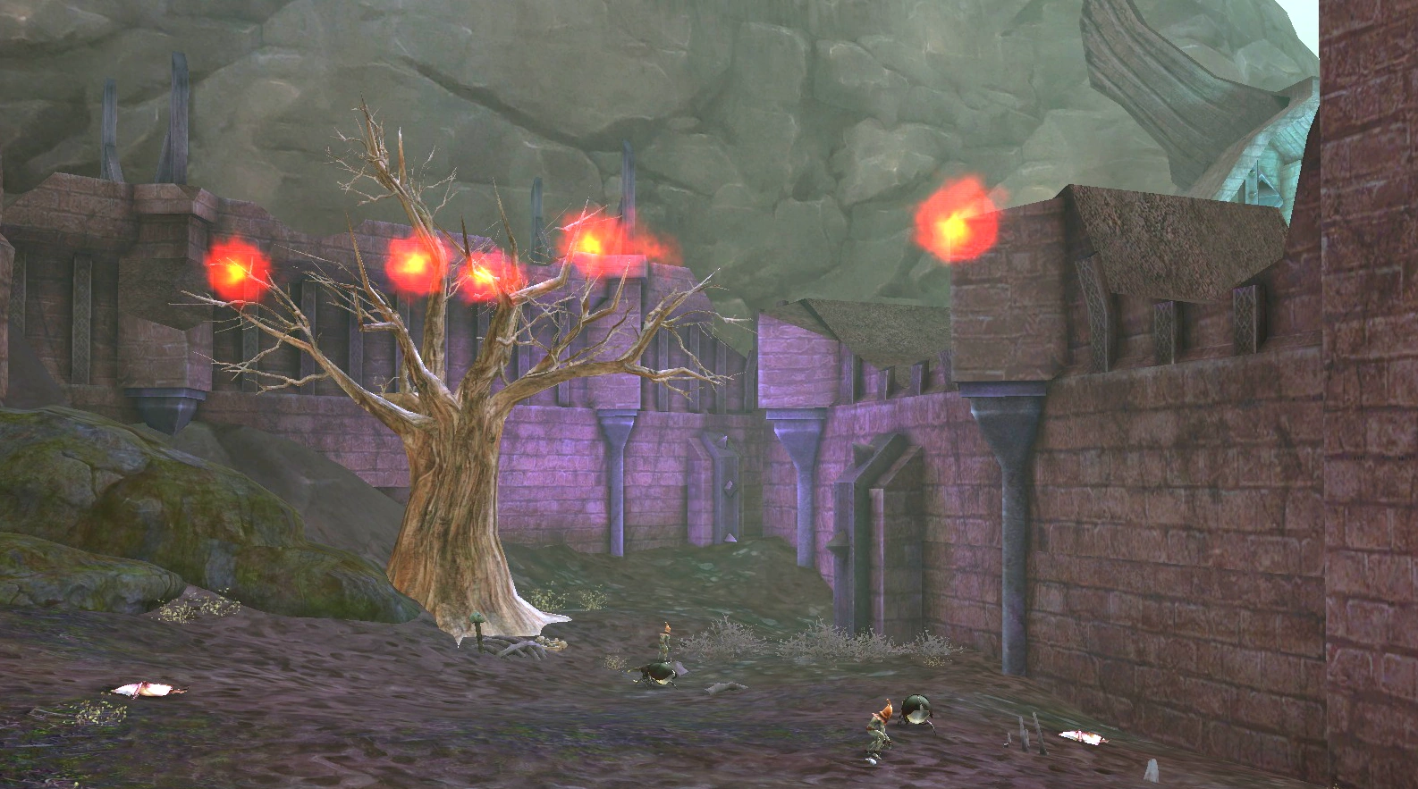 If the player opts to do the Ashes to Ashes quest, he/she is given insight into the history surrounding this gloomy place. At some point in the past, a novice guard named Crypto fell asleep on his first night of duty. The convicts escaped this very same night, and everyone in the area was brutally murdered. Since then the camp has been abandoned and the vengeful ghosts still haunt their dying grounds to-date.