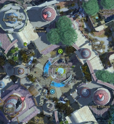 As soon as someone enters the spawn point, one should interact with the Reian Guardian Statue, awarding a small amount of points, claiming it into a Elyos Guardian Statue or a Asmodian Archon Statue. Much like Kamar, the area features several small rooms, which should be cleared in order to achieve a good amount of points (the entrances are barricaded with small spikes, preventing additional enemies from exiting or entering the room). They include the Jotun Research Library and Drana Research Library in Peace Square; Elyos Armory, Asmodian Armory, Kahrun Guard Headquarters and Siel's Spear Headquarters in Lamina Bazaar; Bivarus Tavern and the stores in Spero Residential Parish and Kamena Developement Zone. Other than those, other bigger chambers will also be required to be examined and cleared; Sarpan Capitol, Siel's Temple and Kamar Dungeon Entrance.