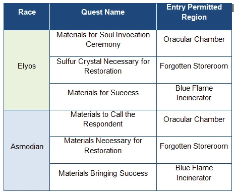 - The Elyos must first complete an entry quest obtained from the NPC Versetti of Inggison.