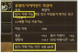 - The item's tooltip shows the remaining time. Once the period ends, its status changes to "cannot be traded."