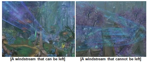 - Daevas who leave purple windstreams with a change in direction will simply glide away; Daevas who break from the windstream by jumping will start to fall.