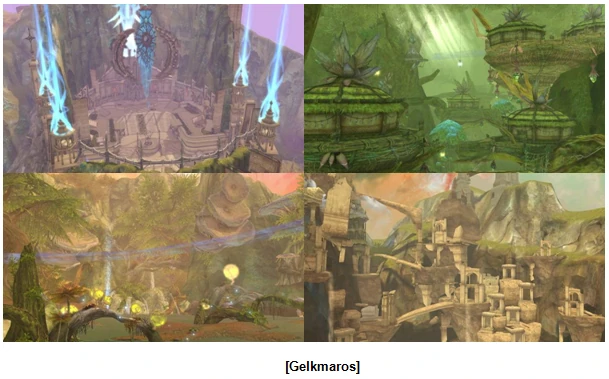 Gelkmaros and Ingisson, hidden from view for so long, have retained an appearance reminiscent of the Atreian mainland before the Cataclysm struck. However, the Drana in these lands has also left its mark; there are many areas where the laws of nature are not obeyed.
