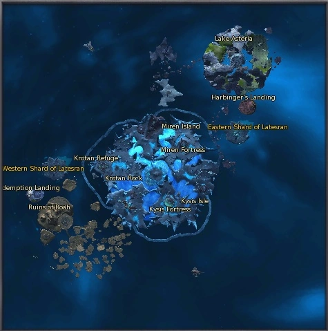 - Bloodburn Reach - A cluster of islands located in the center of the upper layer of Reshanta. It consists of Miren Island, Krotan Rock, Kysis Isle and others.